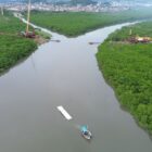 Ao todo, são cinco módulos com 11 m de comprimento e 3 m de largura, que levam concreto, armaduras em ferro galvanizado e blocos isopor, material que auxilia a flutuação das estruturas